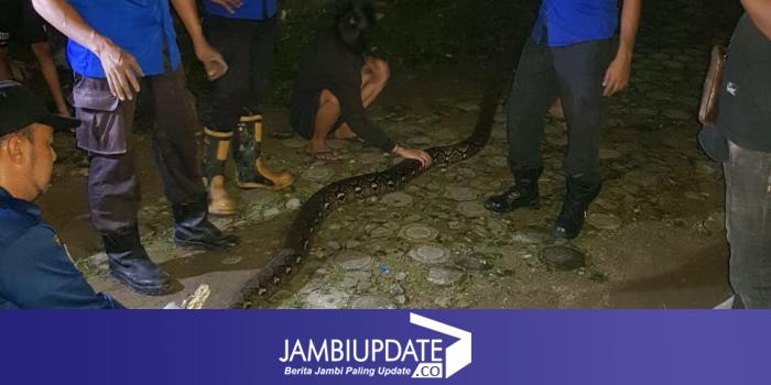 JAMBIUPDATE.CO, JAMBI - Seekor ular sanca dengan panjang 4,25 meter ditemukan di saluran septic tank milik Dani, warga Jambi Selatan, Kota Jambi, pada Senin (9/1) kemarin, sekira pukul 22.10 WIB malam.