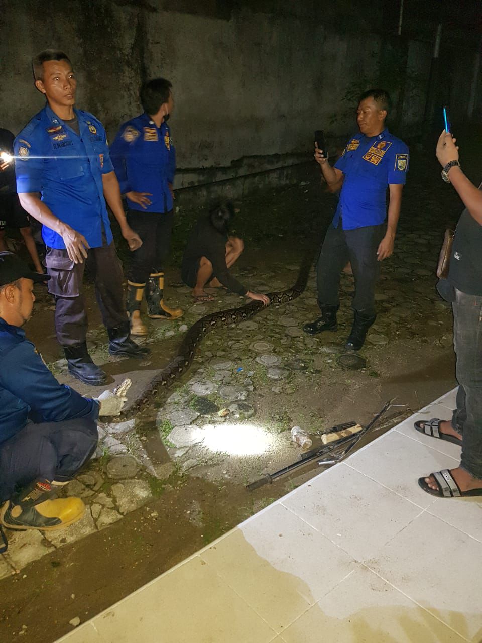 "Anggota kita sebanyak 4 orang turun ke lokasi dan turut mengevakuasi seekor ular tersebut," kata Feriadi.