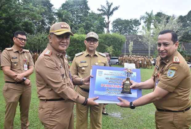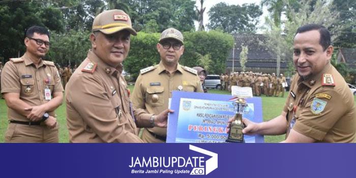 JAMBIUPDATE.CO, JAMBI- Wali Kota Jambi H. Syarif Fasha, pimpin Apel Peningkatan Disiplin ASN Pemerintah Kota Jambi, bertempat di Lapangan Upacara Kantor Wali Kota Jambi (9/1). Pada apel perdana ditahun 2023 itu, Fasha turut pula serahkan apresiasi kepada kecamatan dan kelurahan yang mencapai target realisasi PBB 100% tahun 2022, serta penghargaan pengawasan kearsipan internal dilingkungan Pemerintah Kota Jambi Tahun 2022.