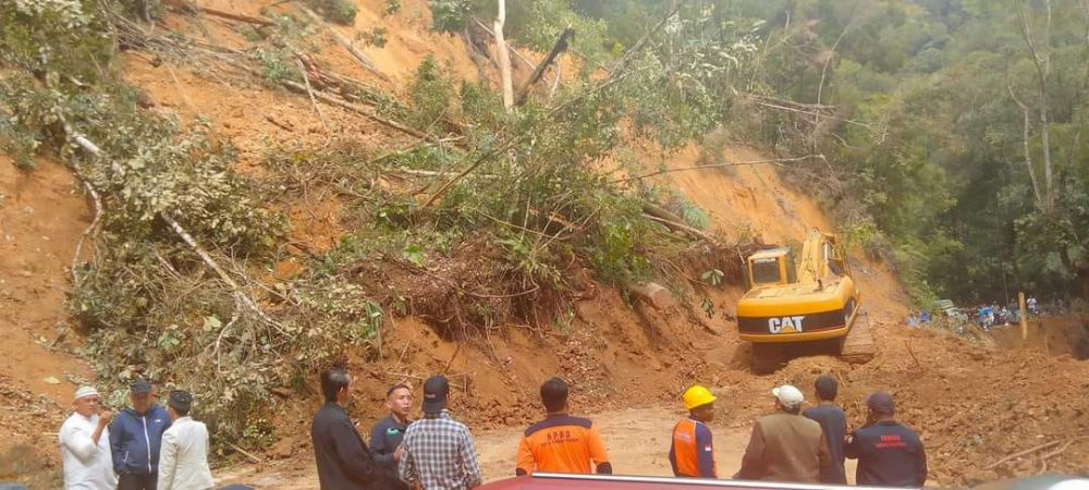 Kasat Lantas Polres Kerinci, AKP Yudistira, dikonfirmasi membenarkan adanya kejadian Longsor di Km 25 arah Puncak Sungai Penuh menuju Tapan. “Benar, Lokasi Titik Longsor di Km 25 Arah Puncak – Tapan setinggi +-. 10 meter,” ujar Kasat.