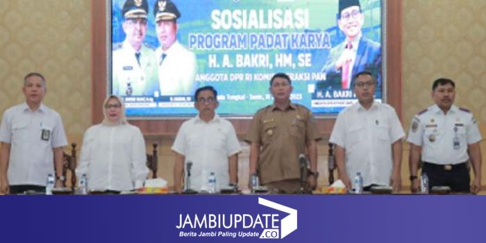 JAMBIUPDATE.CO, KUALA TUNGKAL-Anggota DPR RI Komisi V  H. A. Bakri, HM, SE mengunjungi Kabupaten Tanjung Jabung Barat. Lawatannya kali ini  dalam rangka sosialisasi Program untuk Desa dan Kelurahan "Masa reses DPR RI Komisi V"  yang diselenggarakan di gedung Balai Pertemuan Kantor Bupati, Senin (16/01).