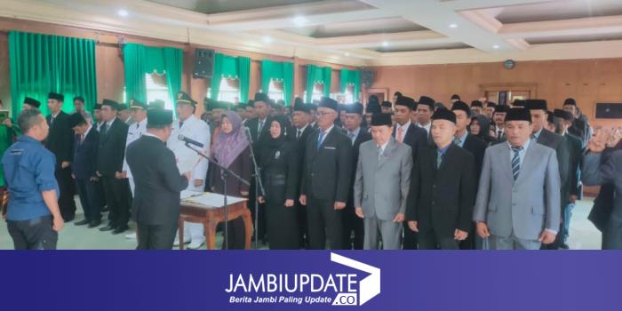 JAMBIUPDATE.CO, MUARASABAK- Bupati dan Wakil Bupati Tanjabtim kembali melakukan penyegaran dilingkup pemerintahannya. Ada sebanyak 16 pejabat administrator dan pengawas serta sebanyak 94 orang guru Kepala Sekolah dilantik, Jumat (9/2) sore.