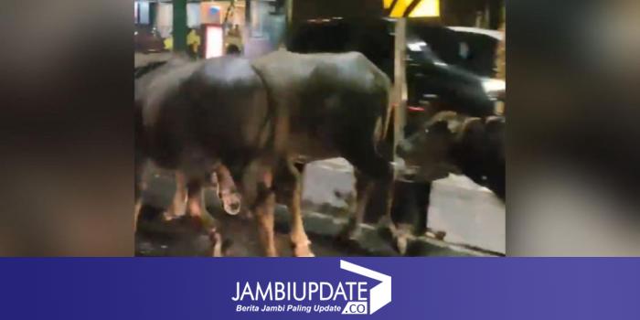 Video kerbau lepas tersebut viral di media sosial, seperti yang di unggah akun @jambisharing didalam captionnya mengatakan “Sebuah video pengendara motor merekam beberapa ekor berkilaran berkeliaran di jalan raya, tepatnya di daerah sipin Kota Jambi”