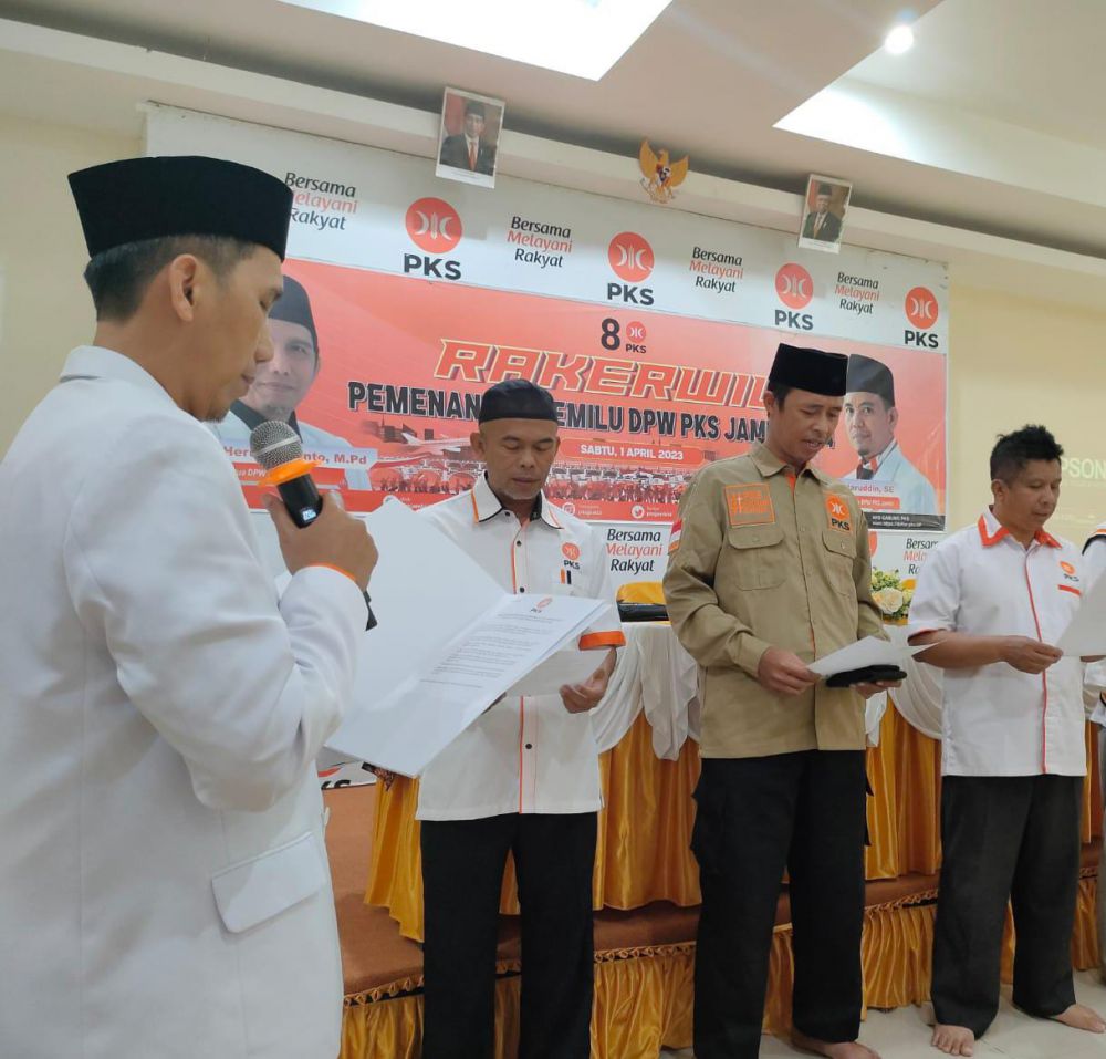 Pelantikan Kordapil PKS se-Jambi ditandai dengan pembacaan ikrar yang dipimpin oleh Ketua DPW PKS Jambi, Heru Kustanto, yang dilanjutkan dengan pemakaian rompi kepada para Kordapil.