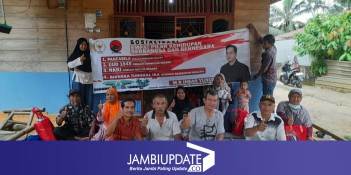 JAMBIUPDATE.CO, JAMBI- Anggota DPR RI Fraksi PDI Perjuangan, M R Ihsan Yunus Kembali melaksanakan kegiatan Sosialisasi Empat Pilar Berbangsa dan Bernegara. Kegiatan di laksanakan pada tanggal 20 April 2023, bertempat di Desa Tanjung Pauh 32 Kecamatan Mestong Kabupaten Muaro Jambi.