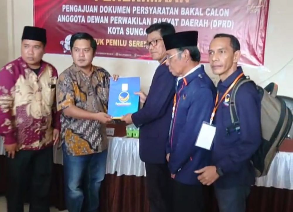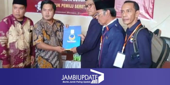 JAMBIUPDATE.CO, SUNGAI PENUH - DPD Nasdem Sungai Penuh mendaftarkan caleg untuk Pemilu 2024 ke KPU Sungai Penuh, Kamis (11/5/2023). DPD NasDem Sungai Penuh pun menargetkan 5 kursi DPRD sekaligus merebut kursi pimpinan DPRD Sungai Penuh untuk 2024.