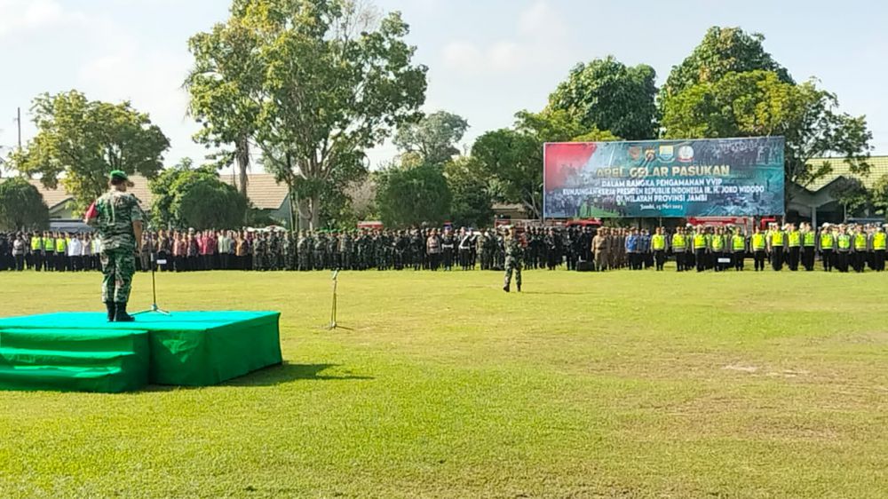 Danrem 042 Garuda Putih, Brigjen TNI Supriono dalam sambutannya mengatakan, apel gelar pasukan pengamanan VVIP kunjungan kerja Presiden RI di wilayah Provinsi Jambi merupakan suatu kehormatan yang harus di junjung tinggi.