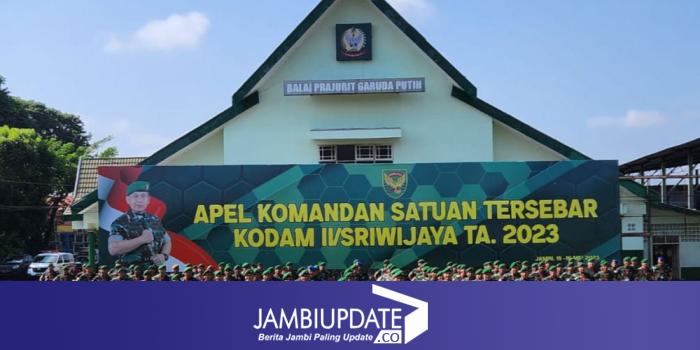 JAMBIUPDATE.CO, JAMBI - Kodam II/Sriwijaya menggelar Apel Komandan Satuan (AKS) Tersebar Tahun 2023, di Balai Prajurit Makorem 042/Gapu, Senin (15/5) pagi.