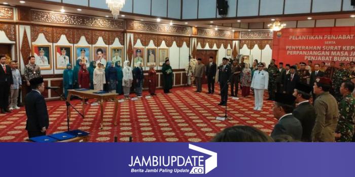 Pelantikan Pj Bupati Sarolangun, dan penyerahan SK perpanjangan Pj Bupati Tebo dan Pj Bupati Muaro Jambi dihadiri Wakil Gubernur Jambi, Sekda Provinsi Jambi, pimpinan Forkopimda dan para pejabat eselon II Pemprov Jambi.