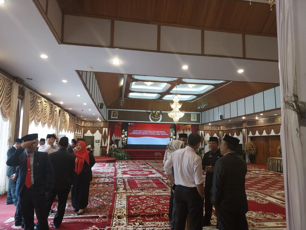 Namun hingga pukul 12.30 WIB pelantikan belum dilangsungkan lantaran masih menunggu Gubernur Jambi Al Haris yang sedang ada kegiatan lainnya.