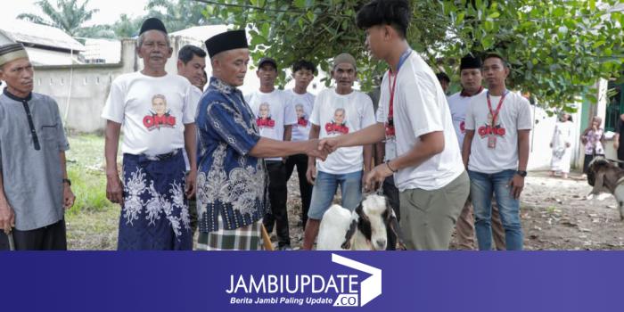 Menyambut Iduladha tahun ini, OMG Jambi memberikan bantuan kambing untuk warga di Desa Talang Belido, Kecamatan Sungai Gelam, Kabupaten Muaro Jambi.