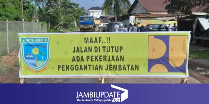 Penutupan jalan ini lantaran, Dinas PUPR Kota Jambi tengah melakukan perbaikan dan pembuatan jembatan baru di kawasan itu.