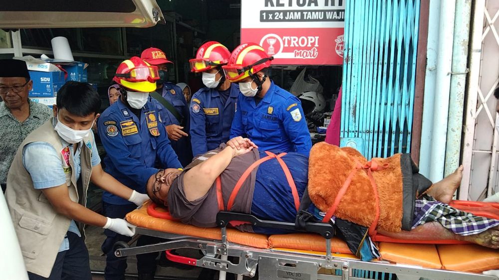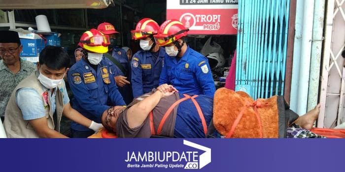 JAMBIUPDATE.CO, JAMBI- Warga dengan bobot 130 kg terpakasa dievakuasi oleh tim penyelamat Dinas Pemadam Kebakaran dan Penyelamatan Kota Jambi, Sabtu lalu.