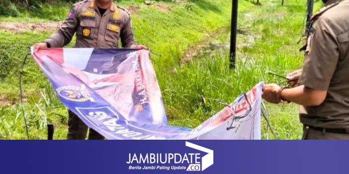 JAMBIUPDATE.CO, MUARASABAK - Pemerintah Kabupaten Tanjabtim melalui Satuan Polisi Pamong Praja dan Damkar melakukan penertiban berbagai bentuk baleho, spanduk dan banner yang merupakan alat peraga kampanye serta iklan produk yang terpampang dibeberapa titik jalan umum.