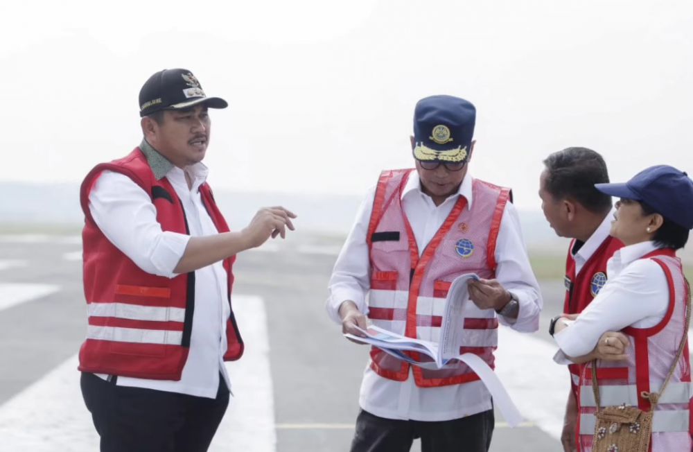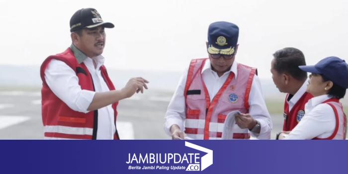 JAMBIUPDATE.CO, MUARA BUNGO - Menteri Perhubungan Budi Karya Sumadi meninjau perkembangan optimalisasi Bandara Muara Bungo didampingi oleh Bupati Bungo, H. Mashuri, Minggu (13/08/2023).