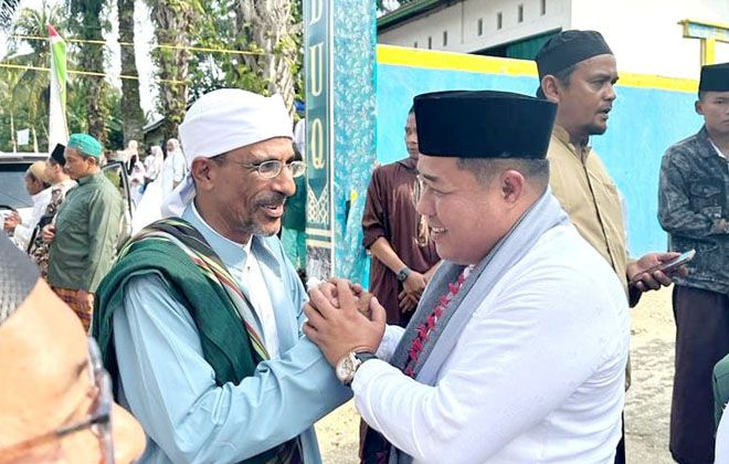 JAMBIUPDATE.CO, JAMBI- Wakili Gubernur Jambi Al Haris, Kepala Biro Umum Setda Provinsi Jambi Muzakir menghadiri pengajian umum dan tabarukan safari dakwah Al Habib Husein dari Hadromod Yaman di Desa Pinang Merah, Kecamatan Pamenang Barat, Kabupaten Merangin, Kamis (31/08/2023).