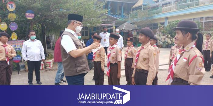 Melihat kondisi itu, Wali Kota Jambi, Syarif Fasha mendatangi sejumlah sekolah di Kota Jambi untuk membagikan masker, diantaranya SMPN 7 dan SDN 47.