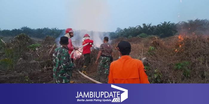 JAMBIUPDATE.CO, MERANGIN-Kodim 0420/Sarko bersama dengan Manggala Agni Sumatera XIII, BPBD Sarolangun, Damkar Sarolangun bersama warga berjibaku padamkan titik api yang ada di kawasan perkebunan warga Desa Bathin VIII Kabupaten Sarolangun Provinsi Jambi dan hutan sekitarnya.