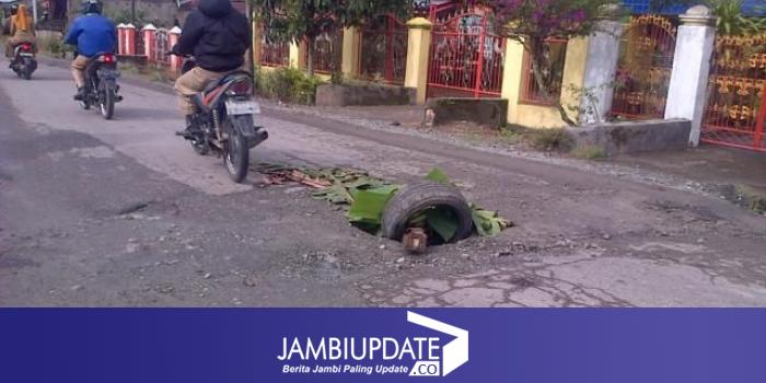 JAMBIUPDATE.CO, JAMBI - Kondisi ruas jalan nasional di pertigaan Trafic Light atau lampu merah Simpang Gado-gado, Kelurahan Payo Selincah, Kecamatan Jambi Timur, Kota Jambi rusak berlubang dan bergelombang.