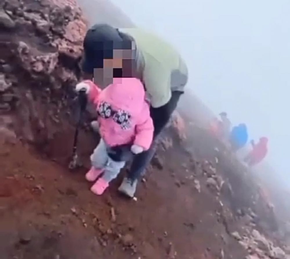 Dalam video yang beredar terlihat seorang lelaki sedang bersama anak balita berada di puncak Gunung Kerinci. Balita itu menggunakan jaket tebal merah muda dan ayahnya mengenakan topi dengan perlengkapan pendaki. Ayahnya terlihat ikut membimbing anaknya manapaki puncak andalas.