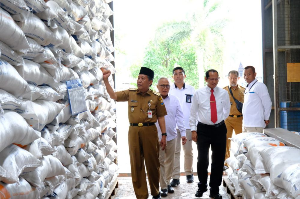 JAMBIUPDATE.CO, JAMBI - Wakil Gubernur Jambi H. Abdullah Sani melaunching Penyaluran Bantuan Pangan Cadangan Beras Pemerintah (CBP) Tahun 2023 Tahap II di Komplek Pergudangan Bulog Pasir Putih, Kota Jambi, Senin (11/9).