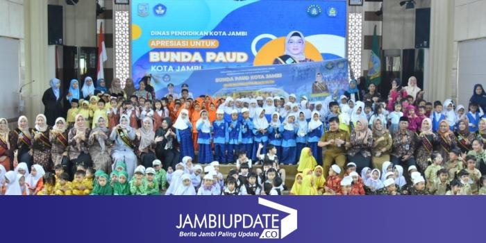 Pada acara tersebut, Bunda PAUD Kota Jambi, Yuliana Fasha, dan Ketua Pokja Bunda PAUD Kota Jambi, dr. Nadia, menerima penghargaan atas dedikasi mereka.