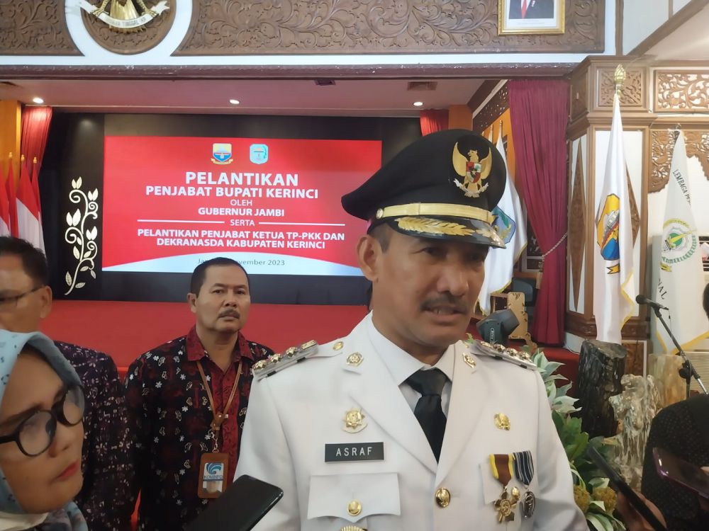 Awalnya, Asraf menyatakan dirinya bukanlah orang baru di Kerinci. Ia menyebut mengawali karier dari bawah hingga perlahan naik ke tingkat eselon IV hingga Kepala Dinas dan Kepala Badan. Hingga dirinya sempat dinonjob dan pindah ke Pemprov Jambi. Dan ia bertekad dan berjanji takkan membebaskan tugaskan (nonjob) pejabat.