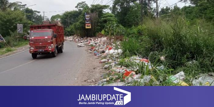 JAMBIUPDATE.CO, JAMBI - Tumpukan sampah menghiasi pemandangan sisi Jalan Lingkar Timur, kawasan Tanjung Lumut, Kecamatan Paal Merah Kota Jambi.