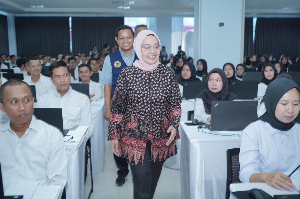 Tampak Sri memantau secara langsung proses pelaksanaan seleksi, mulai dari screening hingga pelaksanaan uji kompetensi seluruh peserta dengan menggunakan sistem Computer Assisted Test (CAT) BKN.