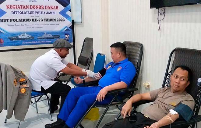 JAMBIUPDATE.CO, JAMBI- Direktorat Kepolisian Perairan dan Udara (Ditpolairud) Polda Jambi melaksanakan Bakti Sosial (Baksos) Donor Darah di Mako Polairud Polda Jambi, pada Rabu (22/11).