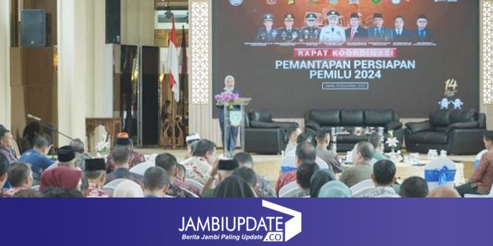 JAMBIUPDATE.CO, JAMBI- Penjabat (Pj) Walikota Jambi Sri Purwaningsih membuka secara resmi Rapat Koordinasi (Rakor) Pemantapan Pemilu Serentak 2024 di Kota Jambi, Kamis (14/12/2023).