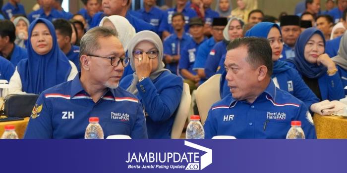 JAMBIUPDATE.CO, JAMBI- Ketua Umum DPP Partai Amanat Nasional (PAN), Zullfikli Hasan (Zulhas) memberikan target besar untuk DPW PAN Provinsi Jambi pada Pemilihan Umum (Pemilu) 2024. Salah satunya mengembalikan 2 kursi DPR RI yang pernah dimiliki PAN Provinsi Jambi pada Pemilu 2009 lalu.