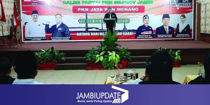 JAMBIUPDATE.CO, JAMBI- Pimpinan Daerah (Pindah) Partai Kabangkitan Nusantara (PKN) Provinsi Jambi menggelar konsolidasi dan pembekalan Caleg untuk Pemilu 2024. Konsolidasi dan pembekalan dihadiri langsung oleh Ketua Umum PKN Anas Urbaningrum dan Sekjen Sri Mulyono di Abadi Suite, Senin (18/12) kemarin.