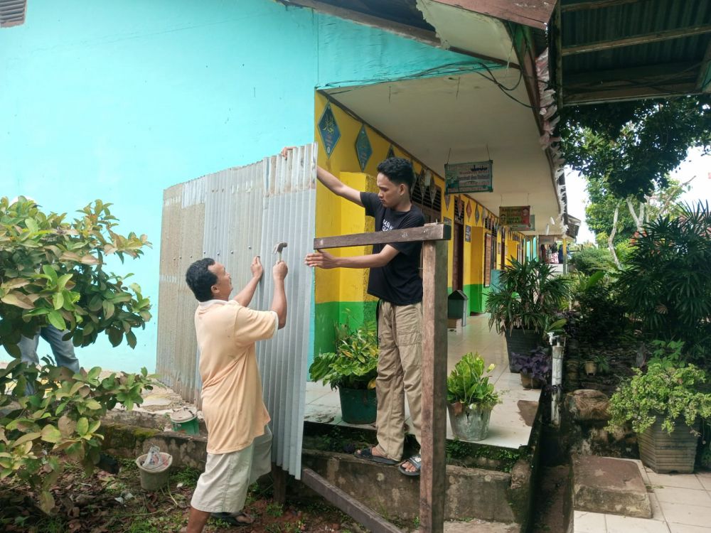 Ahli waris memasang pagar seng keliling, menutup akses masuk sekolah tersebut.