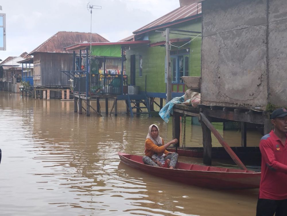 "Aktivitas masyarakat sudah menggunakan perahu sampan," ujar Sri.