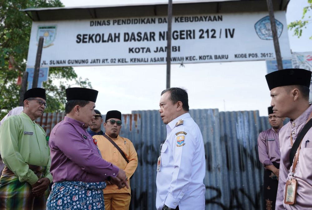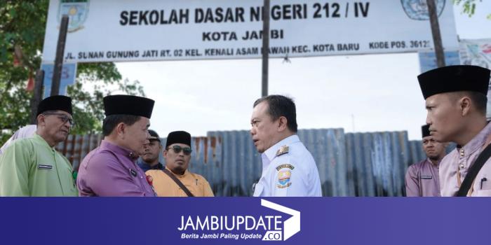 JAMBIUPDATE.CO, JAMBI- Gubernur Jambi Al Haris turun tangan langsung ke Sekolah Dasar Negeri (SDN) 212 yang disegel seng karena belum dibayar Pemerintah Kota Jambi. Haris turun bersama beberapa Kepala OPD Pemprov dan disaksikan Pemerintah Kota Jambi pada Jumat (7/1/2024).