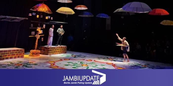 JAMBIUPDATE.CO, JAMBI - Teater Tonggak Jambi hadirkan pergelaran berjudul Payung Terakhir karya/sutradara Didin Siroz, di Gedung arena Taman Budaya Jambi (TBJ) yang terletak di Jalan Sei Arbai I kawasan Sungaikambang, Telanaipura-Kota Jambi pada 13-14 Januari 2024.
