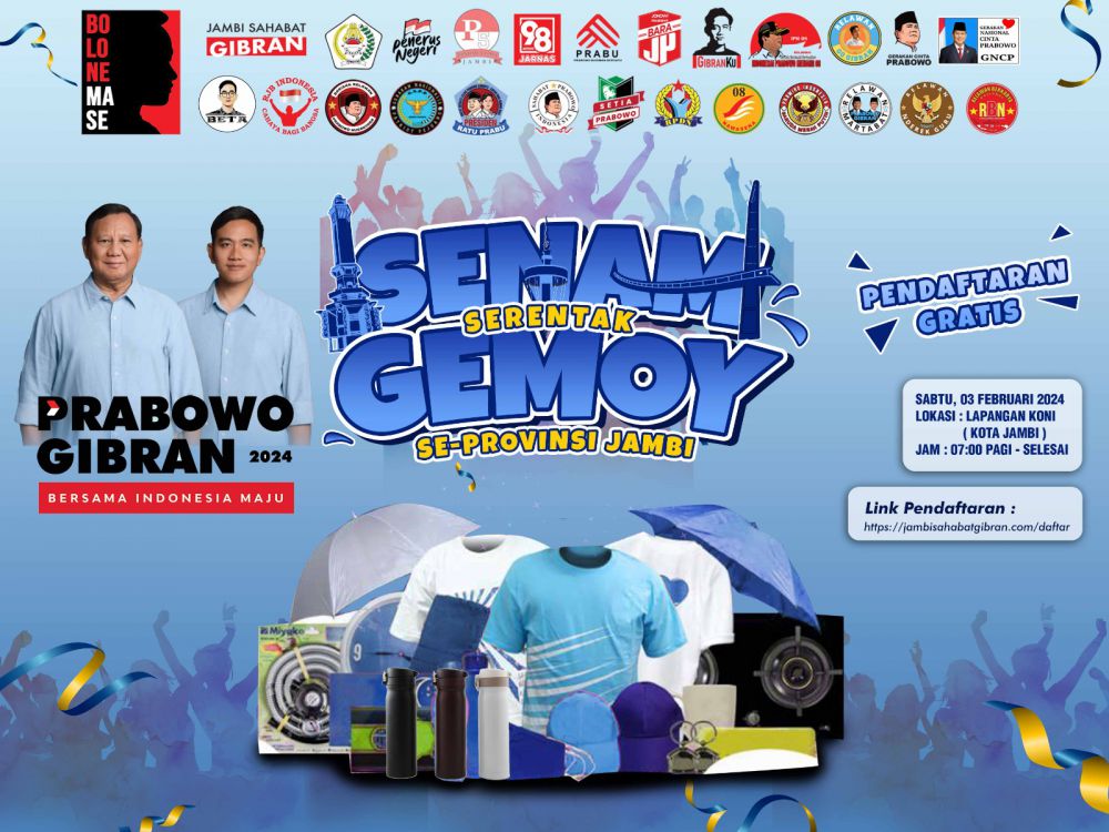 Masyarakat Jambi tak perlu khawatir, acara akbar ini tak dipungut biaya alias pendaftarannya gratis. Dengan link pendaftarannya https: //jambisahabatgibran.com/daftar.