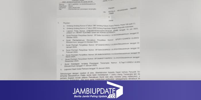 Berdasarkan informasi yang didapatkan wartawan, Polda Jambi pada awal tahun 2025 ini kembali menetapkan dua orang tersangka untuk perkara yang sama seperti 3 terpidana sebelumnya, yakni pemalsuan sertifikat tanah.