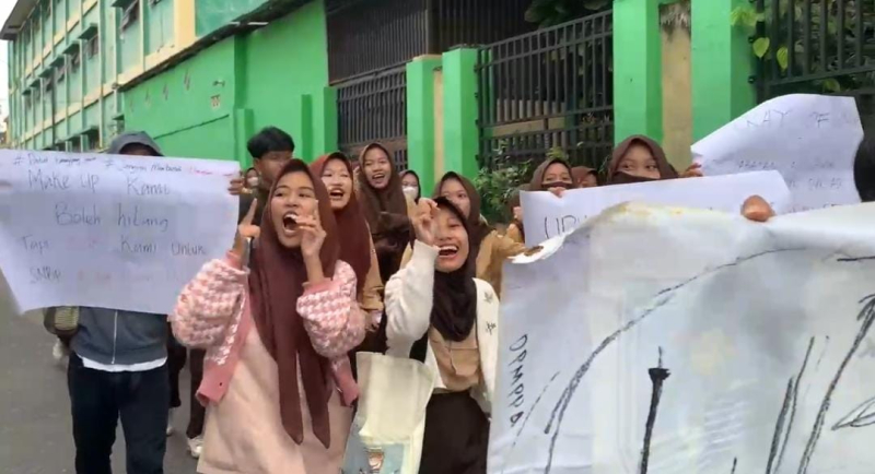 JAMBIUPDATE.CO, JAMBI - Ratusan siswa kelas XII SMKN Kota Jambi menggelar unjuk rasa di sekolah pada Rabu (5/2/2025).