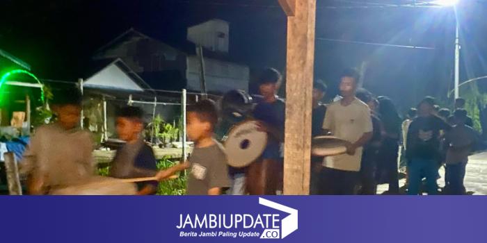 JAMBIUPDATE.CO, TANJABTIM – Tradisi arakan sahur di wilayah pesisir Tanjung Jabung Timur Desa Teluk Majelis Kecamatan Kuala Jambi, Selasa (4/3).Partisipasi anak-anak yang membawa panci sebagai alat musik pengiring.