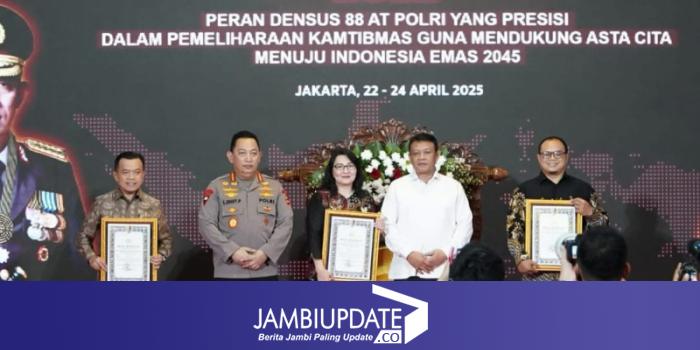 Penghargaan ini diterima Gubernur Jambi Al Haris yang diberikan langsung oleh Kapolri Jenderal Polisi Listyo Sigit Prabowo di Auditorium Sekolah Tinggi Ilmu Kepolisian (STIK) PTIK, Kebayoran Baru, Jakarta Selatan, Selasa (22/04/2025) pagi.