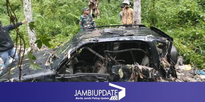 JAMBIUPDATE.CO, JAMBI - Mobil Direktur PDAM Tirta Kayangan Sungai Penuh, Edy Alfarisi masuk jurang setelah terbawa longsoran sampah saat hujan lebat, Rabu (30/4/2025).