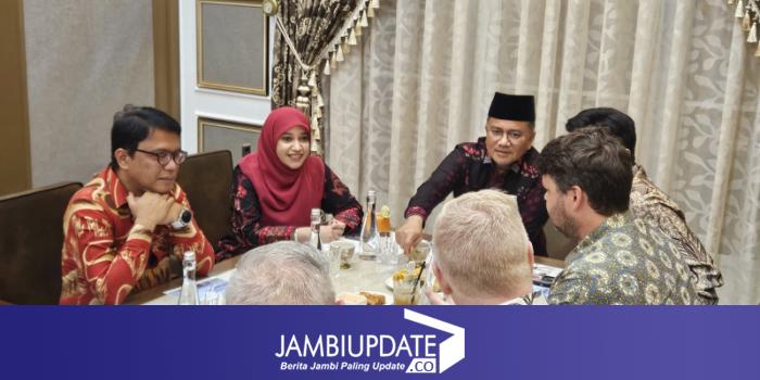 JAMBIUPDATE.CO, JAMBI- Wali Kota Jambi dokter Maulana menyambut hangat beberapa tamu dari kedutaan Besar Canada, di Gudhas Village, Adam Malik Kota Jambi, Rabu malam (30/4/2025).