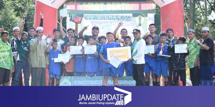 JAMBIUPDATE.CO, BATANGHARI - Sekolah Sepak Bola (SSB) Tunas Bangsa U-12, keluar sebagai juara pertama pada Grassroot yang diadakan Ponpes Minhajus Sa'adah, Desa Pelayangan, Kabupaten Batanghari, Minggu (4/5).