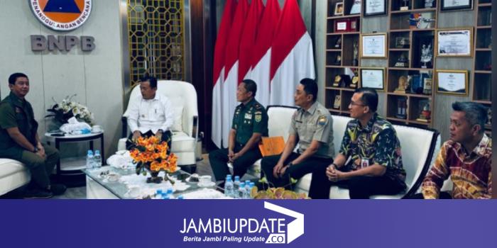 JAMBIUPDATE.CO, JAKARTA - Gubernur Jambi Dr. H. Al Haris, S, Sos, MH bersama Danrem 042 Gapu Brigjen TNI Heri Purwanto, SE, M.Sc menemui Kepala BNPB Pusat Letjen TNI Suharyanto, bertempat di Gedung Graha BNPB Pusat, Jakarta, Senin (23/06/2025).