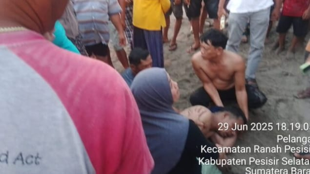 JAMBIUPDATE CO, KERINCI– Empat Orang Warga Kerinci yang berkunjung kepantai Sumedang Nagari Nyiur Malambai, Kecamatan Ranah Pesisir, Kabupaten Pesisir Selatan, Minggu (29/6/2025) sekitar pukul 17.00 WIB Hanyut terseret arus ombak.