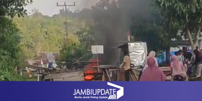 Pantauan di lapangan, badan jalan sudah tertutup total. Warga menaruh kayu besar melintang di jalan dan membakar ban, sehingga arus lalu lintas lumpuh. Kendaraan dari arah Kerinci menuju Bangko, maupun sebaliknya, tidak bisa melintas.