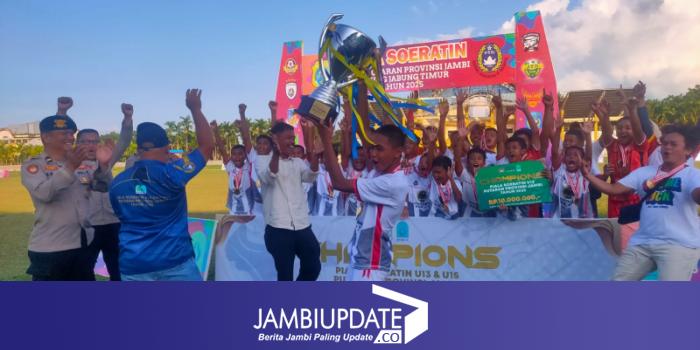 JAMBIUPDATE.CO, MUARASABAK – Piala Soeratin U-13 dan U-15 putaran Provinsi Jambi tahun 2025 resmi berakhir setelah hampir dua pekan berlangsung di Stadion GOR Paduka Berhala, Kabupaten Tanjabtim yang ditunjuk sebagai tuan rumah.