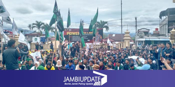 JAMBIUPDATE.CO, JAMBI - Ratusan mahasiswa yang tergabung dalam BEM se-kabupaten Kerinci dan Kota Sungai Penuh melakukan aksi unjuk rasa di Mapolres Kerinci, Selasa (2/9/2025). Mereka berangkat dari Lapangan Merdeka Sungaipenuh sekitar pukul 11.30 WIB, lalu bergerak bersama menuju Mapolres Kerinci.
